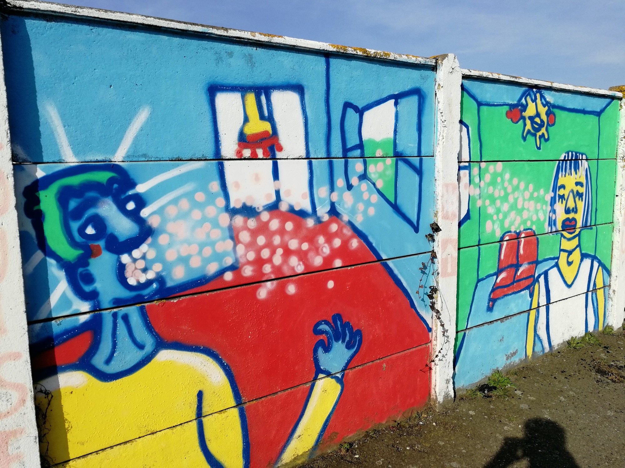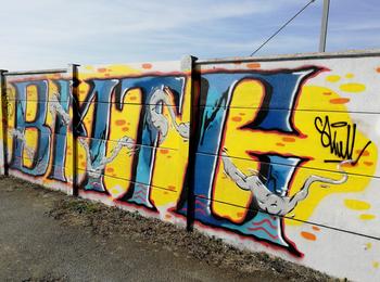 L’oeuvre est de type graffiti. Vous pouvez l’admirer dans la ville de Saint-Nazaire en France et plus précisément ici : Avenue des Frégates, 44600 Saint-Nazaire, France.