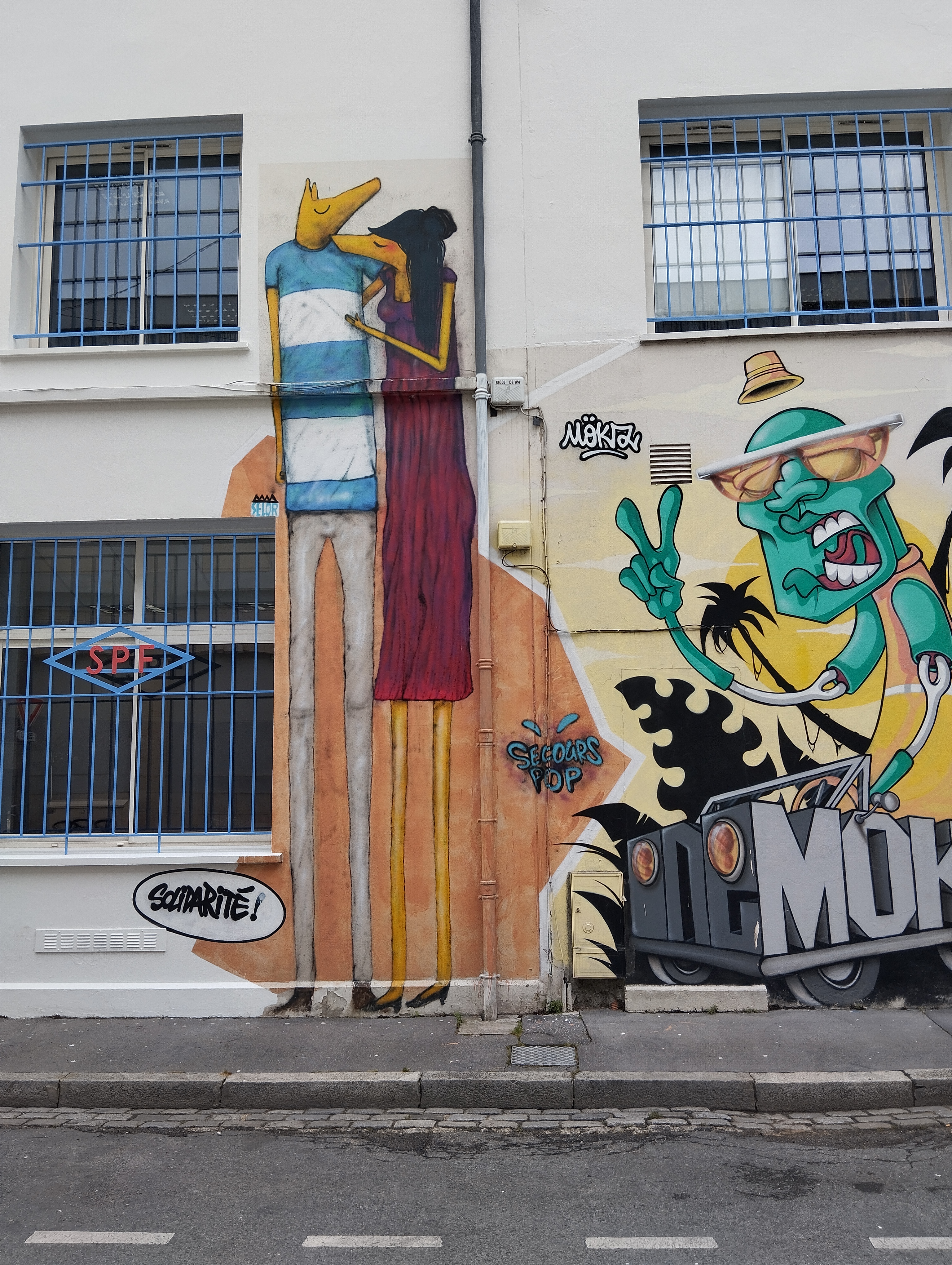 L’oeuvre est de type graffiti. Vous pouvez l’admirer dans la ville de Bordeaux en France et plus précisément ici : 95 Quai de Paludate, 33800 Bordeaux, France.