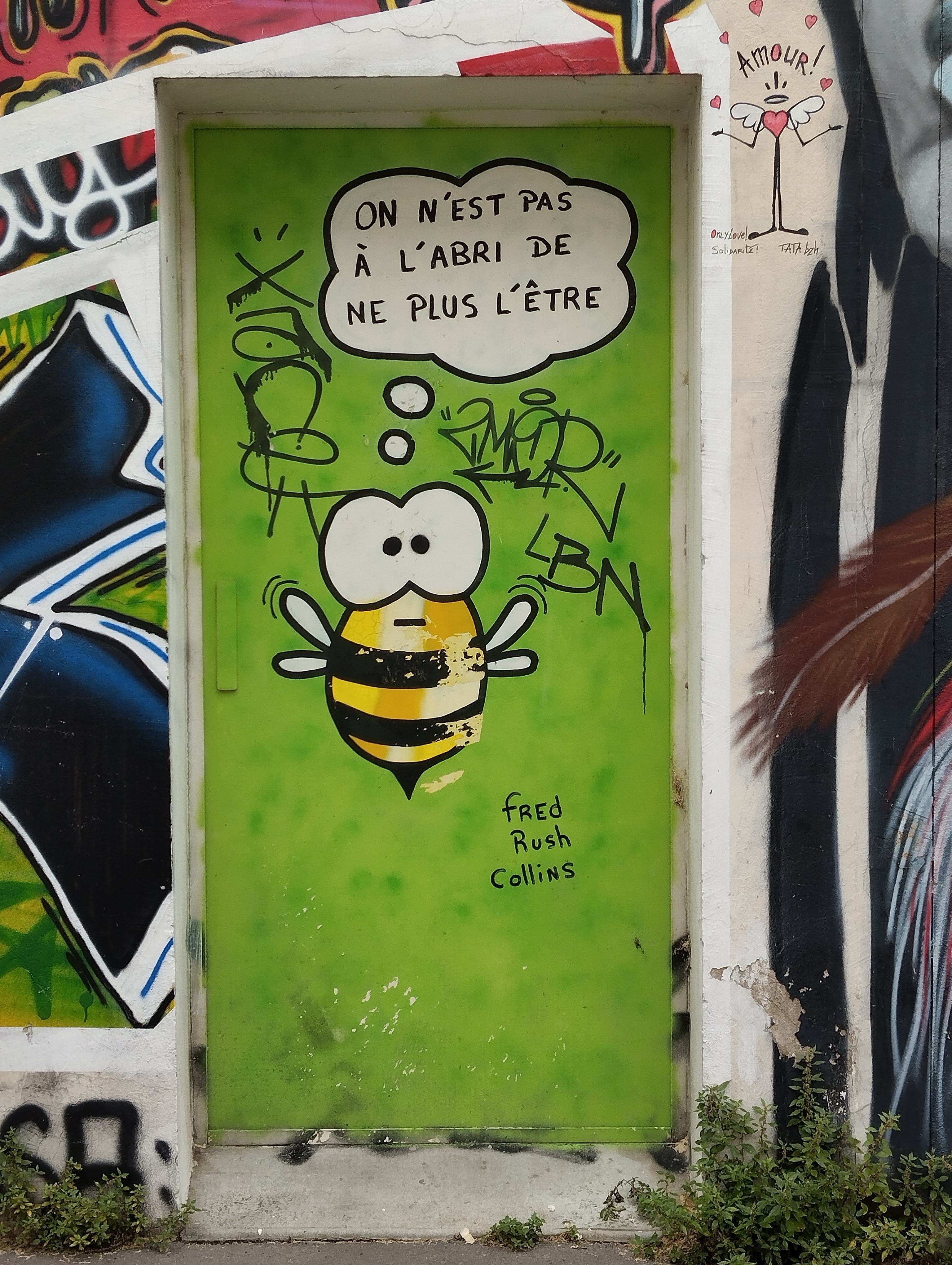 L’oeuvre est de type graffiti. Vous pouvez l’admirer dans la ville de Bordeaux en France et plus précisément ici : 97 Quai de Paludate, 33800 Bordeaux, France.