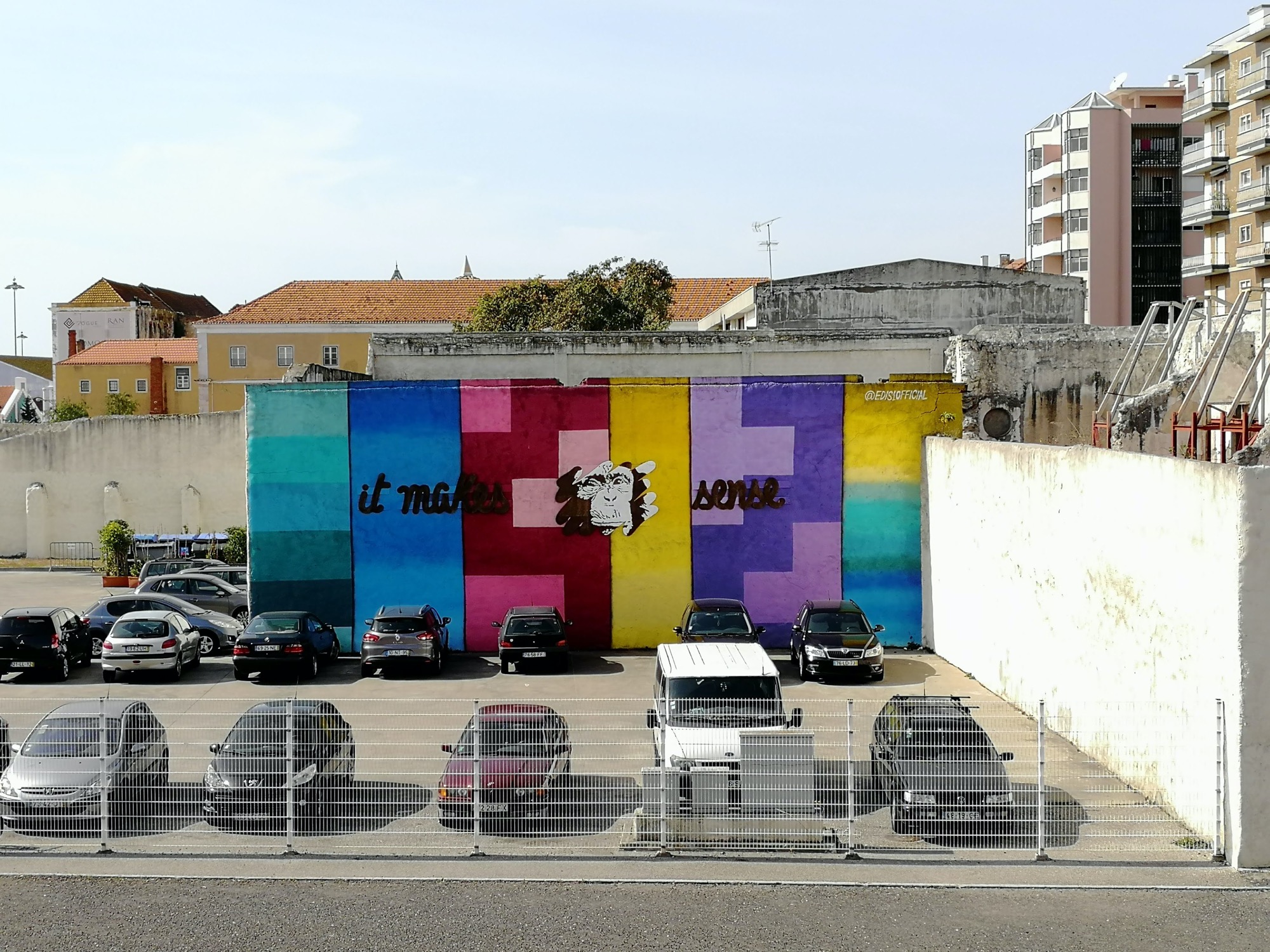 L’oeuvre est de type graffiti. Vous pouvez l’admirer dans la ville de Lisboa en Portugal et plus précisément ici : mod3, loja4, R. Bartolomeu Dias, Lisboa, Portugal.