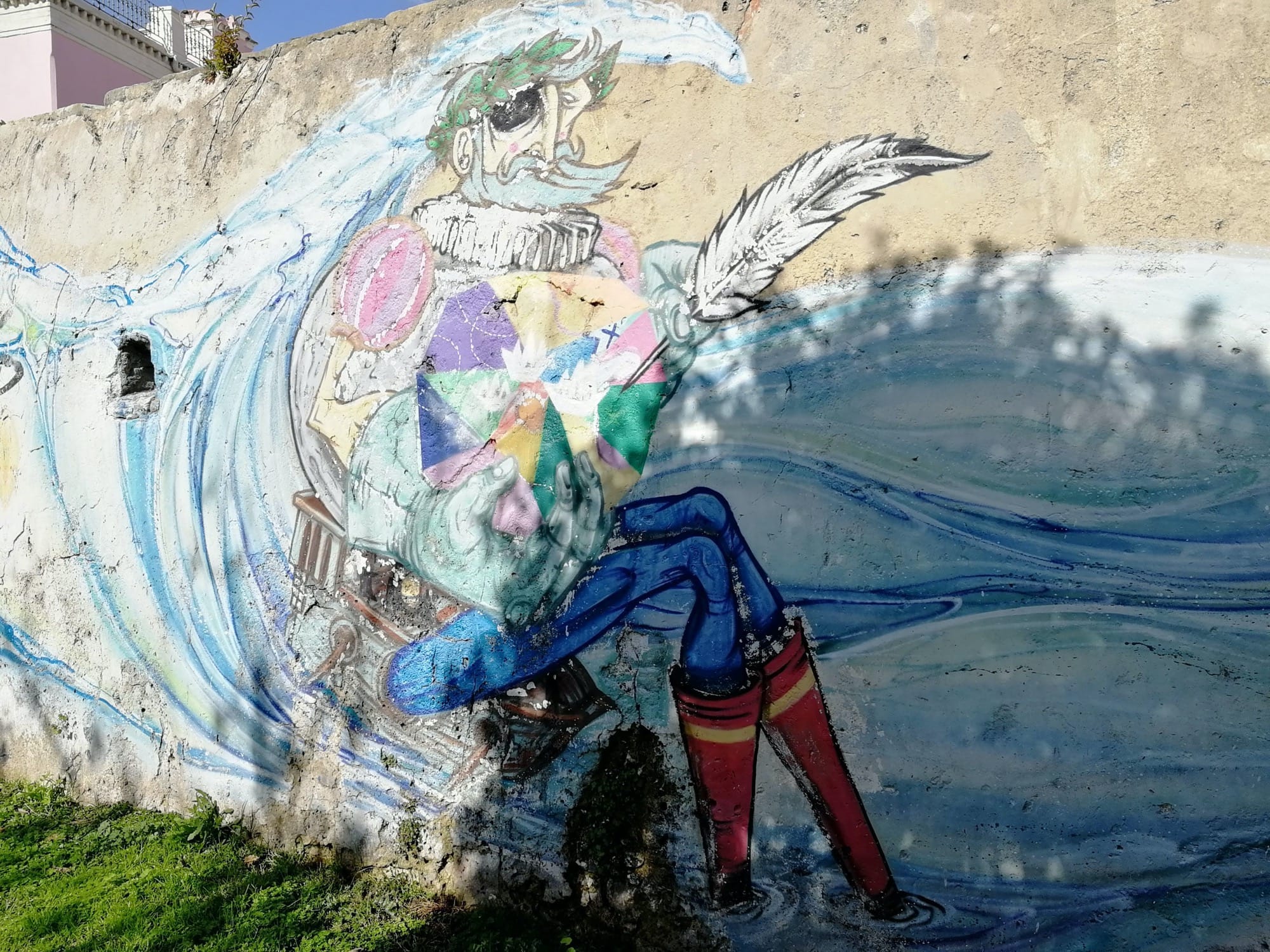 L’oeuvre est de type graffiti. Vous pouvez l’admirer dans la ville de Lisboa en Portugal et plus précisément ici : R. Alexandre de Sá Pinto 9, 1300-300 Lisboa, Portugal.