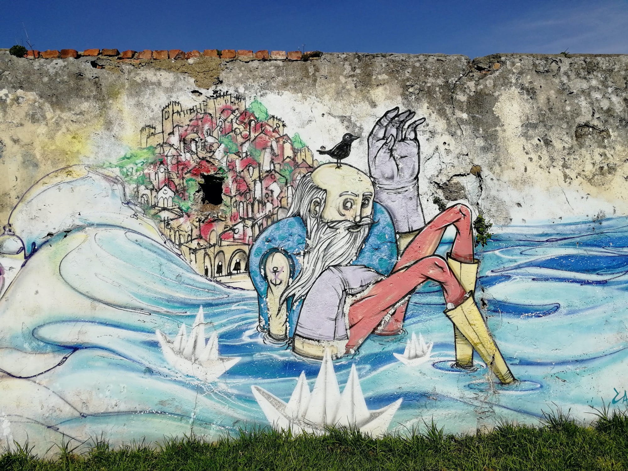 L’oeuvre est de type graffiti. Vous pouvez l’admirer dans la ville de Lisboa en Portugal et plus précisément ici : R. Alexandre de Sá Pinto 9, 1300-300 Lisboa, Portugal.
