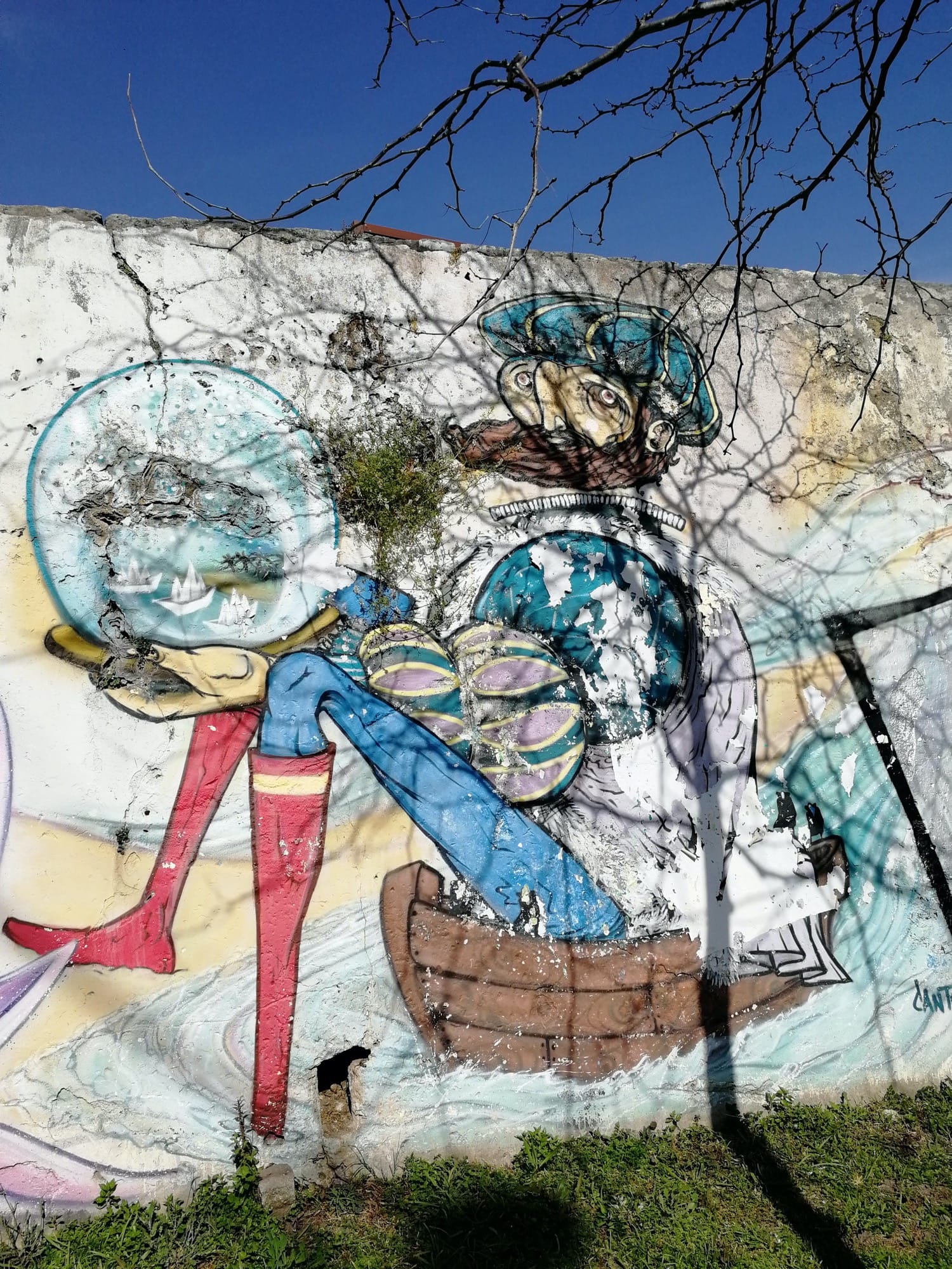 L’oeuvre est de type graffiti. Vous pouvez l’admirer dans la ville de Lisboa en Portugal et plus précisément ici : R. Alexandre de Sá Pinto 13A, 1300-598 Lisboa, Portugal.