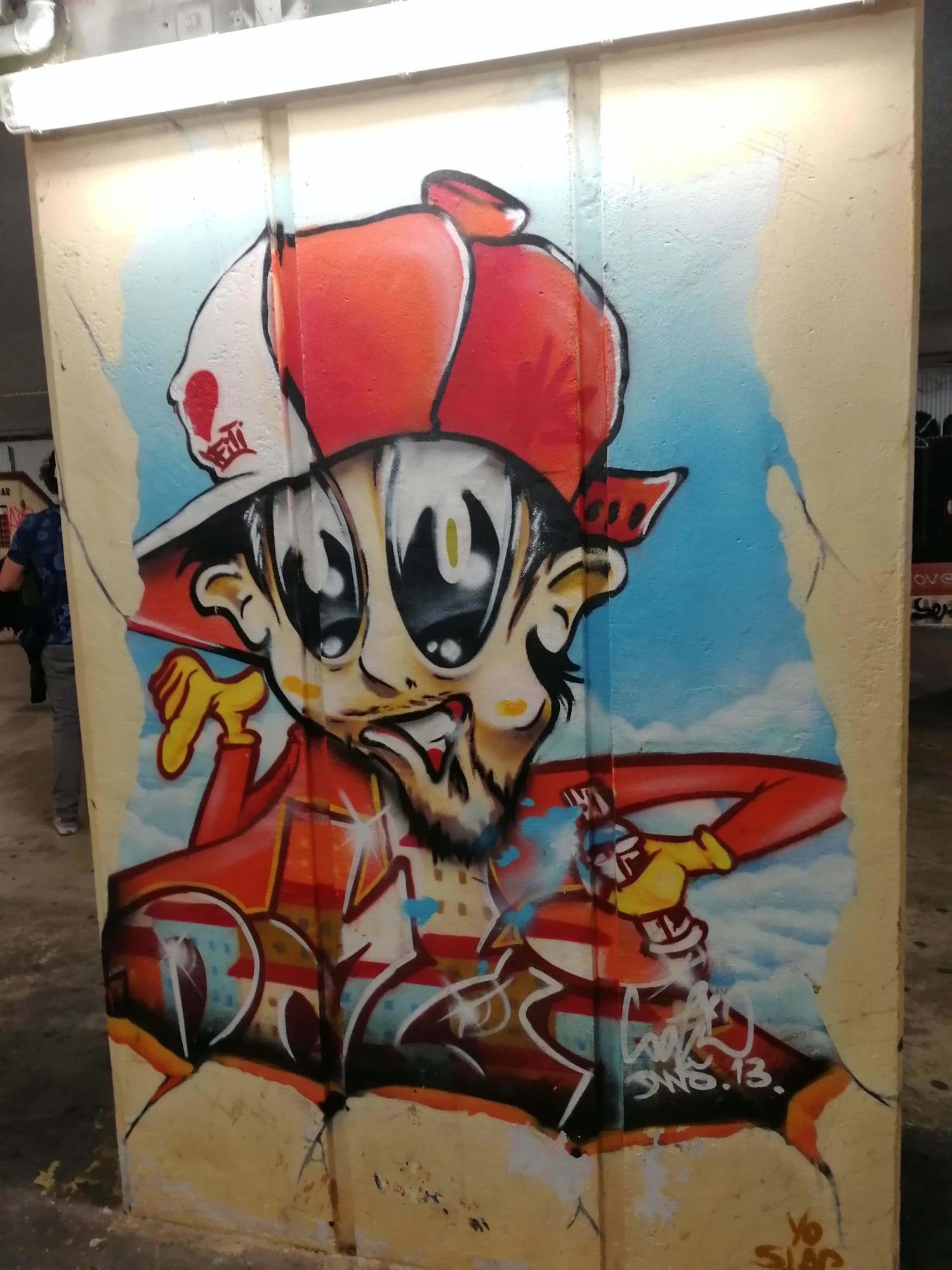 L’oeuvre est de type graffiti. Vous pouvez l’admirer dans la ville de Lisboa en Portugal et plus précisément ici : R. Cozinha Económica 5, 1300-023 Lisboa, Portugal.