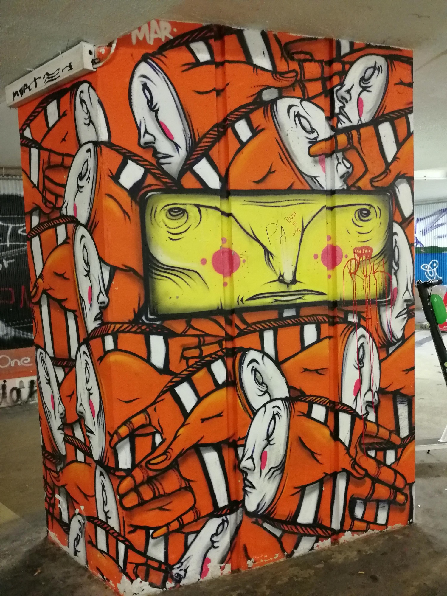 L’oeuvre est de type graffiti. Vous pouvez l’admirer dans la ville de Lisboa en Portugal et plus précisément ici : R. Cozinha Económica 5, 1300-023 Lisboa, Portugal.