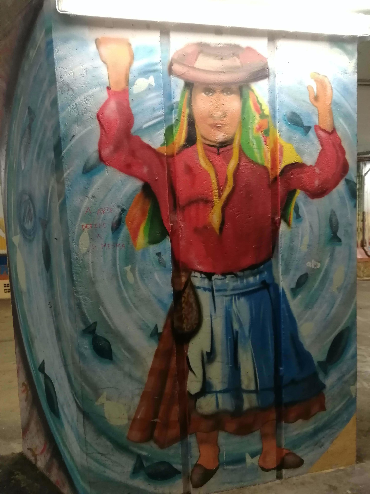 L’oeuvre est de type graffiti. Vous pouvez l’admirer dans la ville de Lisboa en Portugal et plus précisément ici : R. Cozinha Económica 5, 1300-023 Lisboa, Portugal.