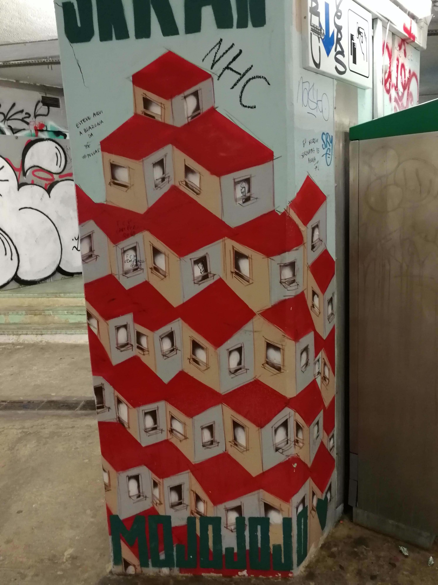 L’oeuvre est de type graffiti. Vous pouvez l’admirer dans la ville de Lisboa en Portugal et plus précisément ici : R. Cozinha Económica 5, 1300-023 Lisboa, Portugal.