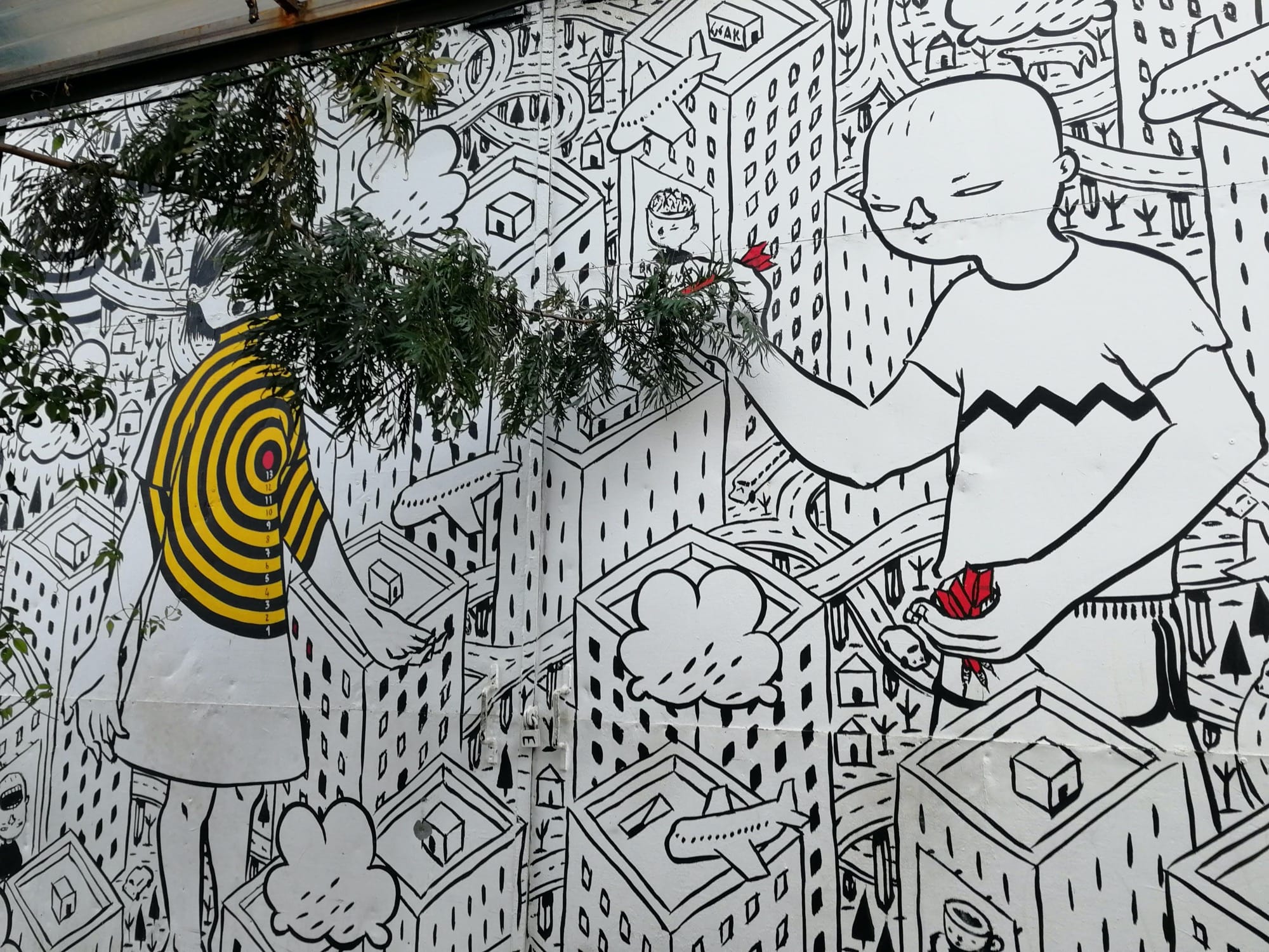 L’oeuvre est de type graffiti. Vous pouvez l’admirer dans la ville de Lisboa en Portugal et plus précisément ici : R. Rodrigues de Faria 103, 1300-501 Lisboa, Portugal.